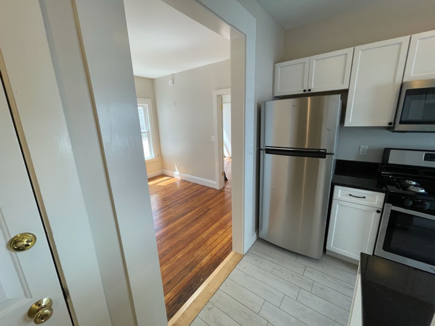 Recently renovated 1BR apartment located in Parkside neighborhood. Brand new kitchen includes stainless steel appliances, new cabinetry, and granite countertops. Bathroom has quartz counters and glass shower. Fresh paint and refinished hardwood floors throughout. Small yard area and coin-op laundry on site. Street parking. Tenants pay heat (efficient gas Rinnai), electric, and internet/cable.