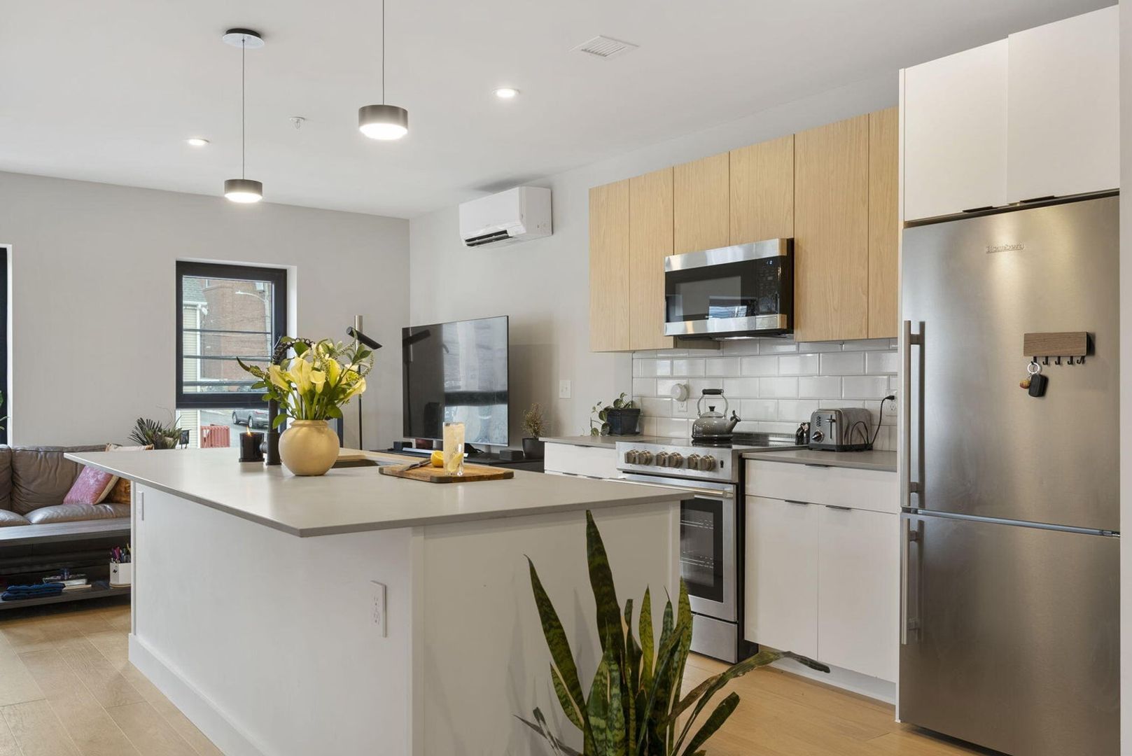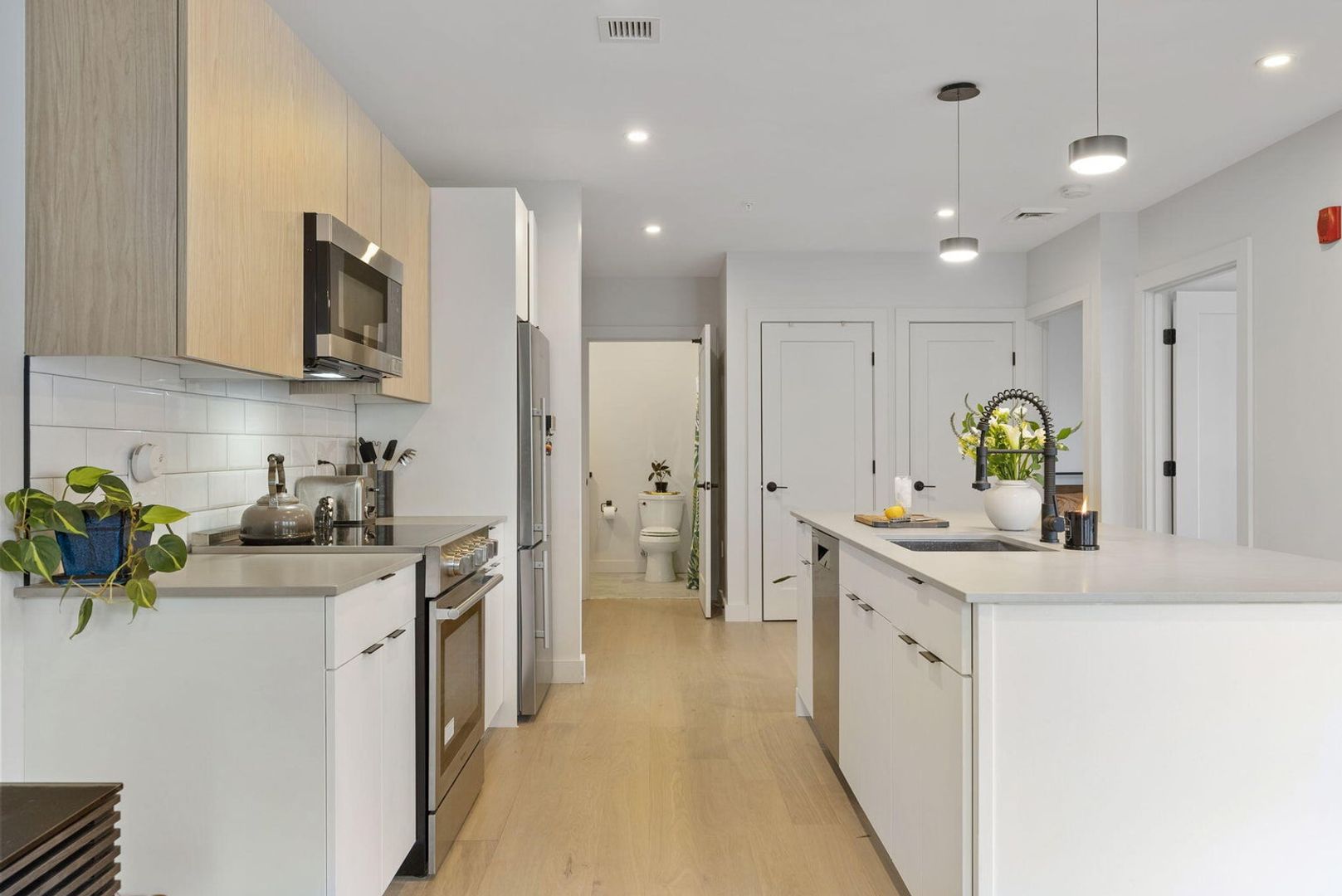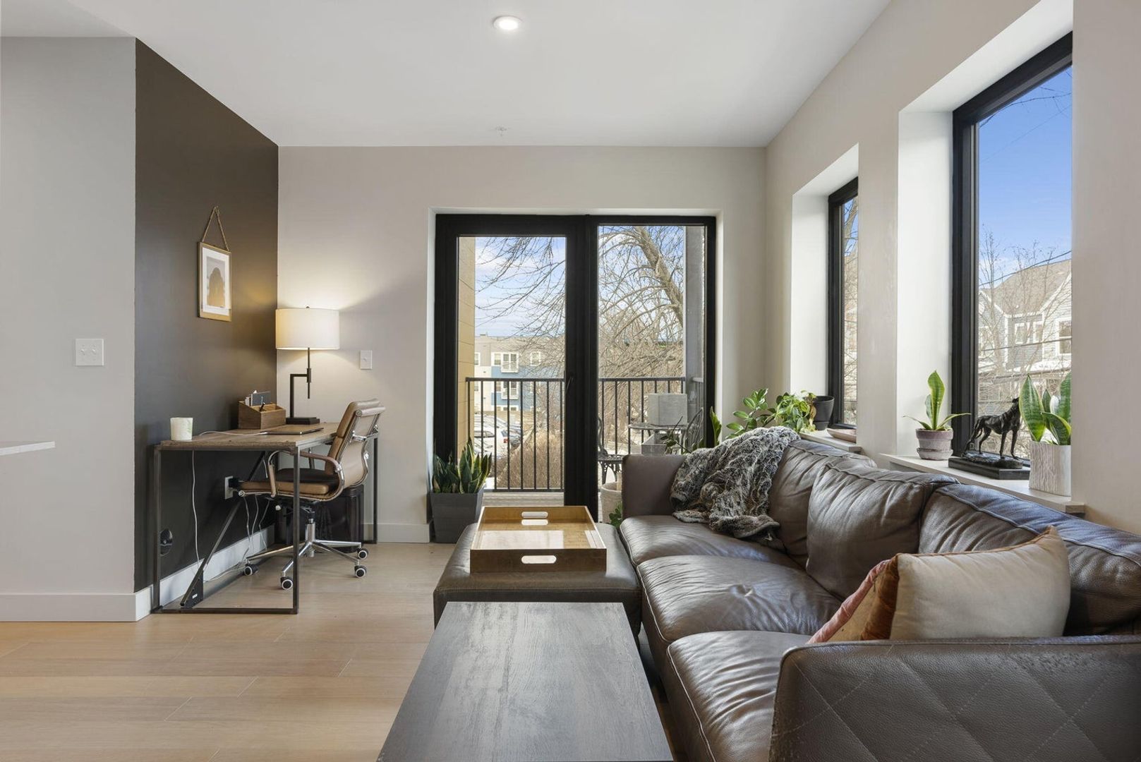 This beautifully furnished brand new condo is available for a 6 month minimum beginning 10/1. Corner unit features quartz countertops, efficient heat pumps, and private balcony. 1 covered, off street parking space and in unit washer/dryer included (more parking available for additional fee).